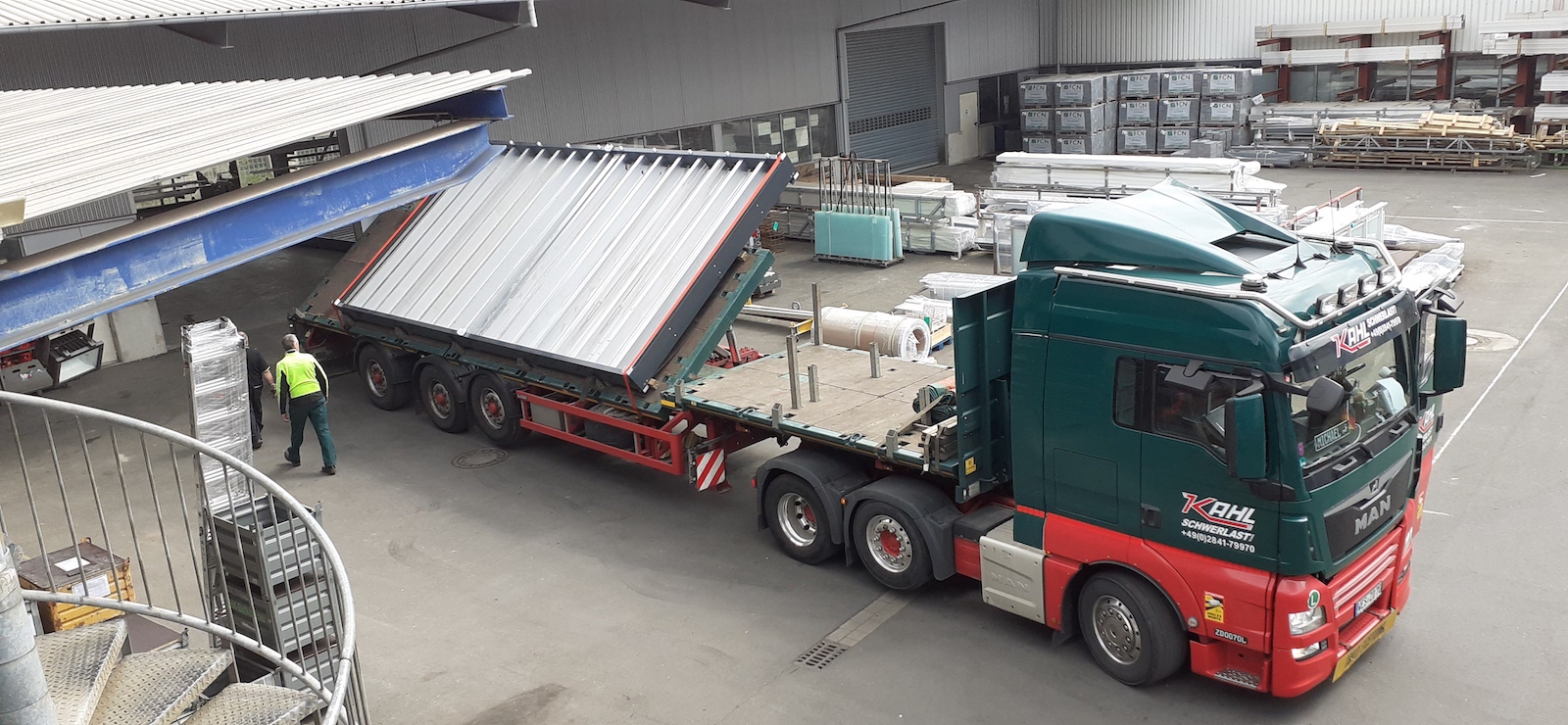 Um logistische Engpässe zu vermeiden, erfolgt die Anlieferung durch firmeneigene LKW. Den produktschonenden Transport der vormontierten Bauteile gewährleisten wir mittels durchdachter Transportsysteme.
